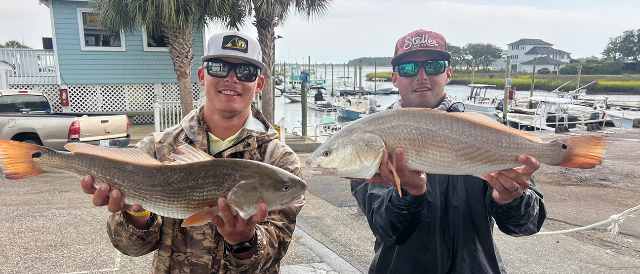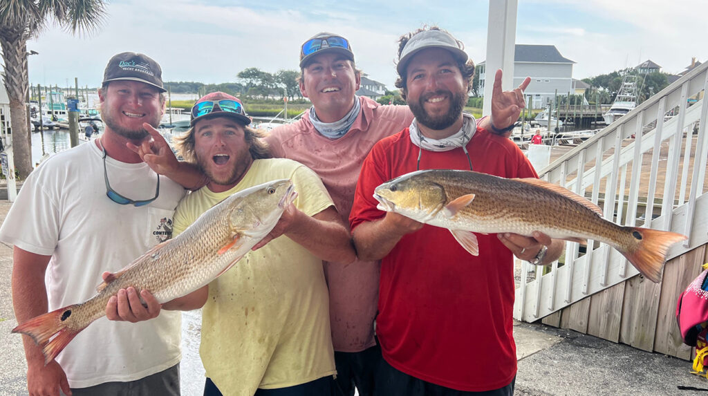 The team stayed close to home on Sunday morning, fishing areas around Ocean Isle that hadn’t produced much the week prior but had a history of holding big reds. Their first fish, a 6.7-pounder, came early. A second fish of similar size followed, but knowing it wouldn’t be enough, they returned to a previously unproductive spot and landed a red just over seven pounds.