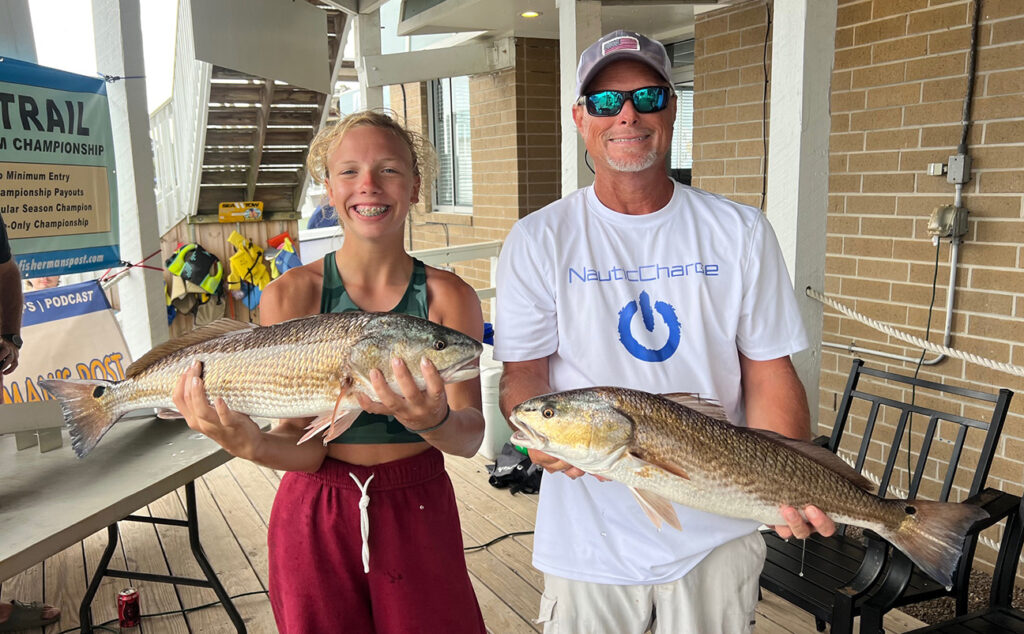 Camille and Rennie Clark, of Team Nautic Charge Batteries, finished the 2025 Trail Championship in second place with two red drum weighing 13.56 lbs. Their fish fell for a mix of artificial and live baits.