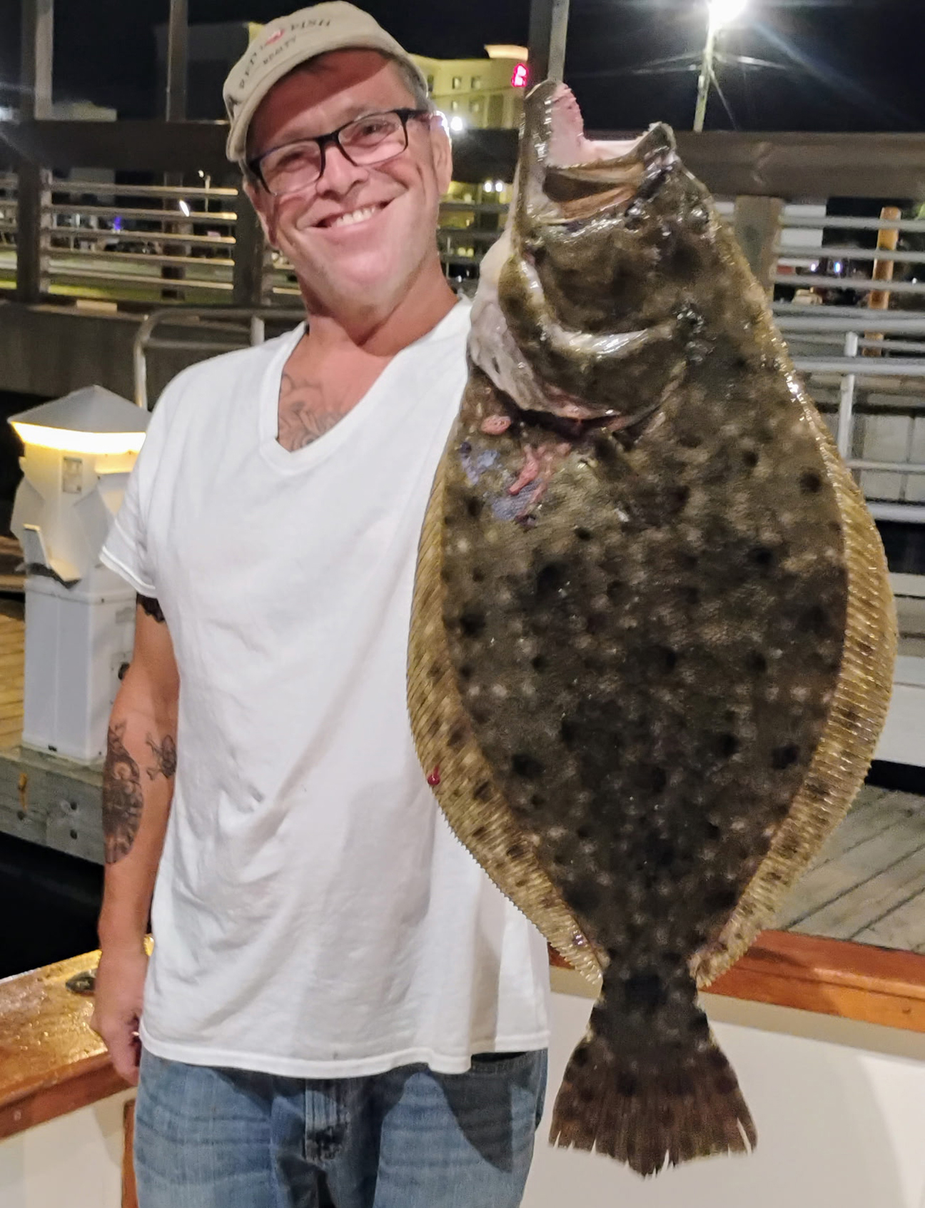 Flounder are in these same areas, and they’re hitting Carolina-rigged live mullet.