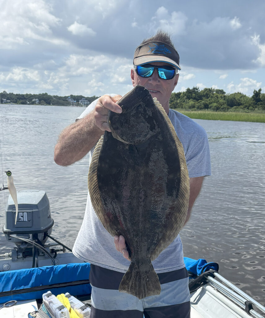 Kelley Winton, of Leland, caught this 26″ flounder in the ICW near Carolina Beach using a live finger mullet.