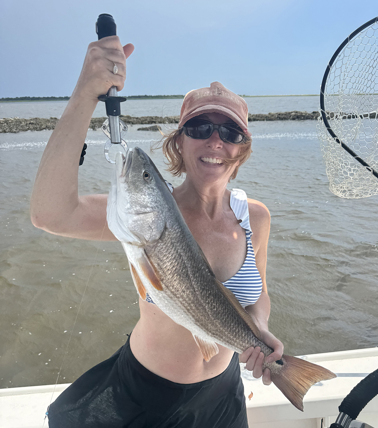 Amanda Brewer, of Wilmington, caught this 24″ red drum by the rock wall south of Fort Fisher on a finger mullet.