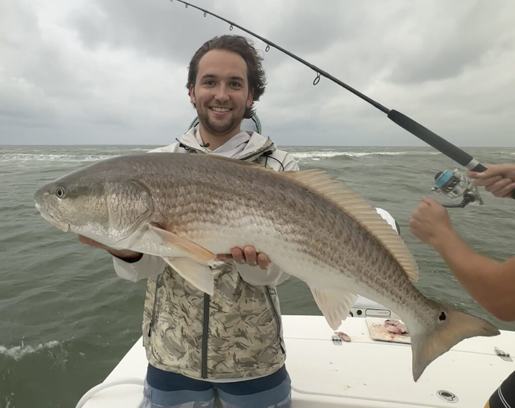Nicholas Ralph, of Miami, landed this bull red drum on a piece of cut mullet in the Pamlico Sound behind Hatteras. He was fishing with Capt. Peter Wann of Wann Sportfishing Charters.