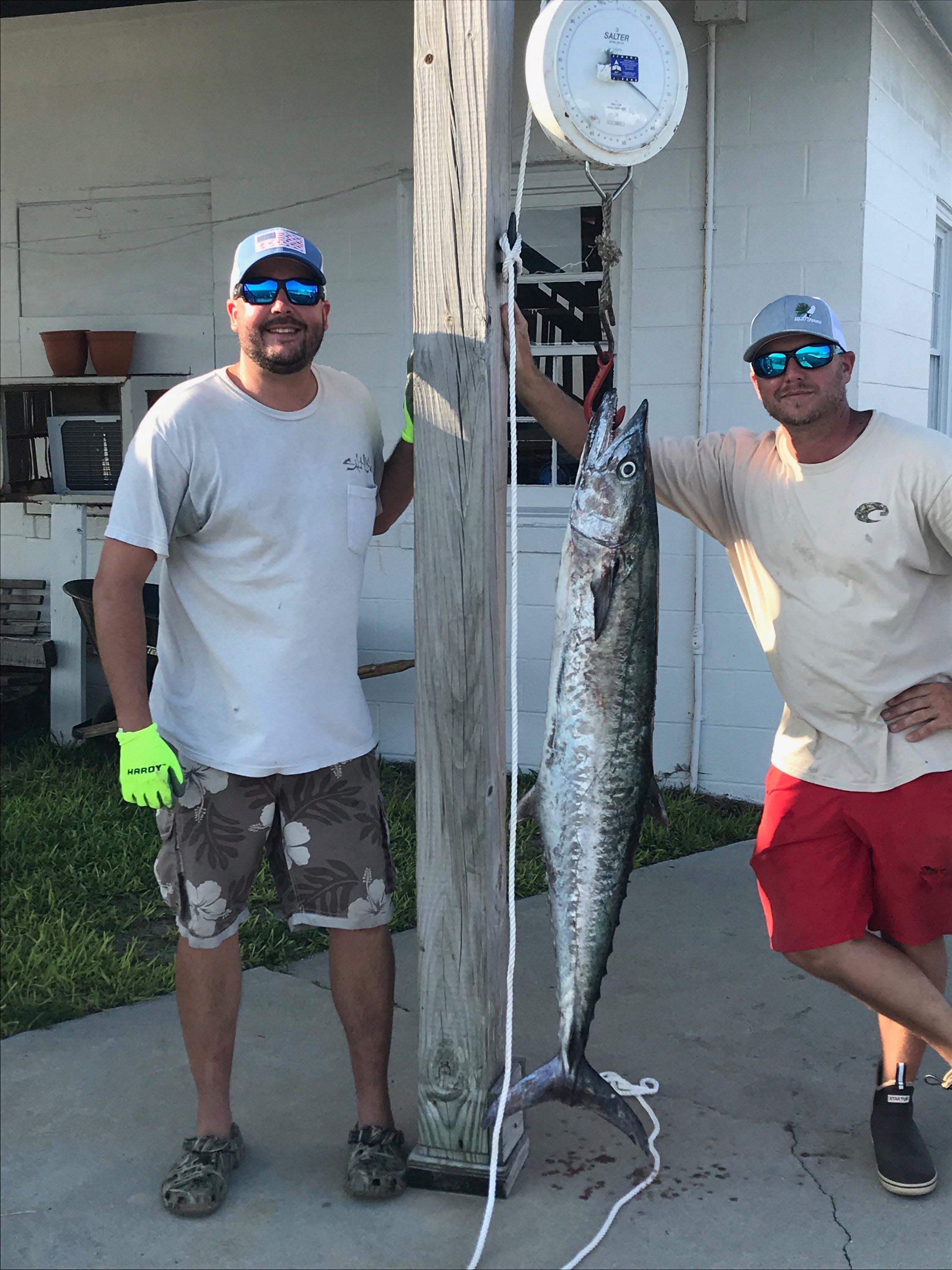 Ricky Funderburk and Ryan Smith landed this 36 lb. king mackerel trolling dead bait over a nearshore wreck off of Harker’s Island.