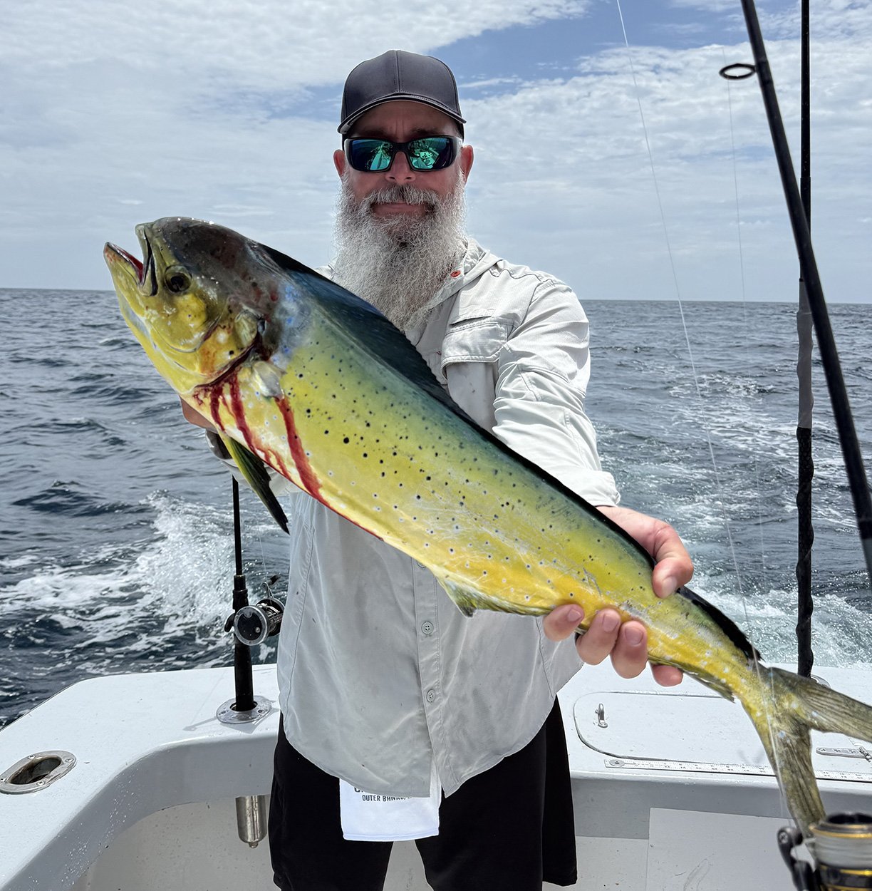 Matthew Bawden, of VA, caught this mahi offshore of Oregon Inlet on cut tuna. He was fishing with Capt. Aaron Kelly of Rock Solid Fishing.