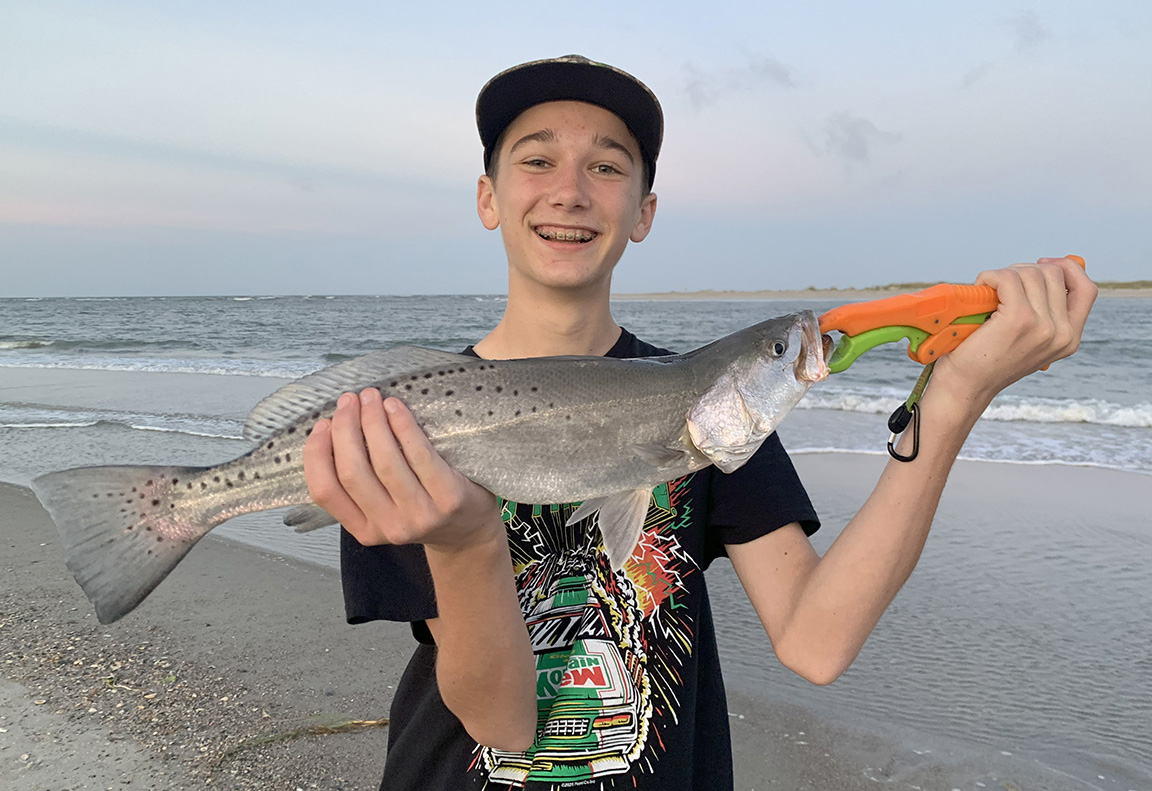 Wes Caldwell, of Holly Springs, caught this 21” speckled trout at the point in Oak Island on a gold Rat-L-Trap.