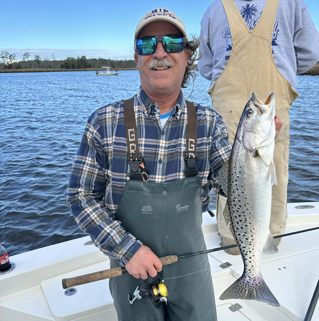 Bailey Spear, of Emerald Isle, landed this trout in Pungo Creek on a 5″ golden bream soft plastic. He was fishing with Capt. Hugh Sutton of Pungo Charters.