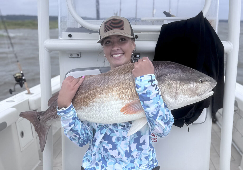 Helen Donahue, of Elizabeth City, landed this 46” bull drum in the lower Neuse River on cut mullet. She was fishing with Capt. Dave Hegel of Pamlico Pirate Fishing Charters.