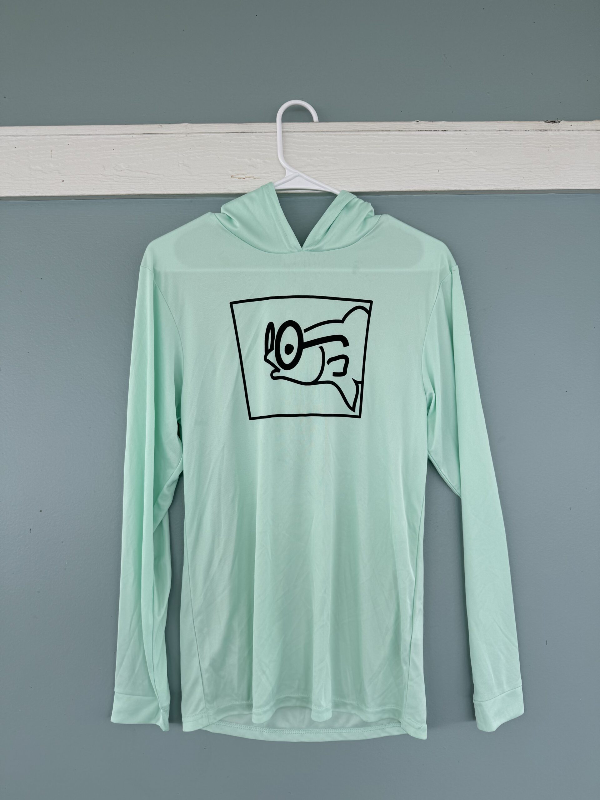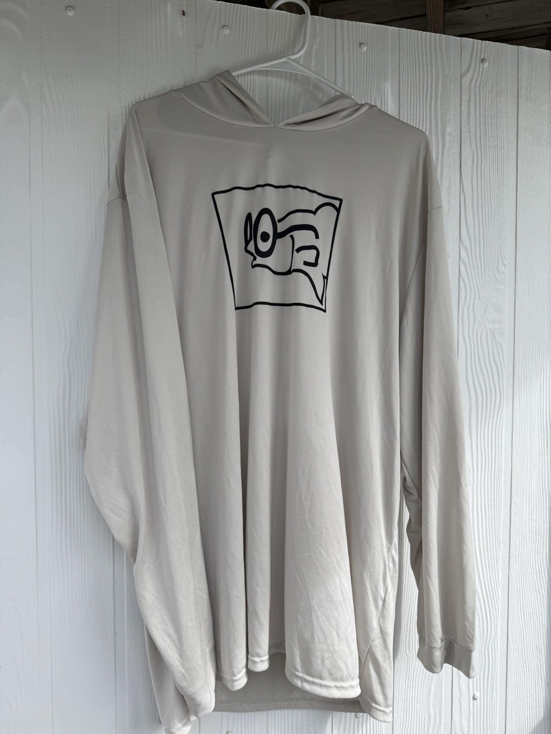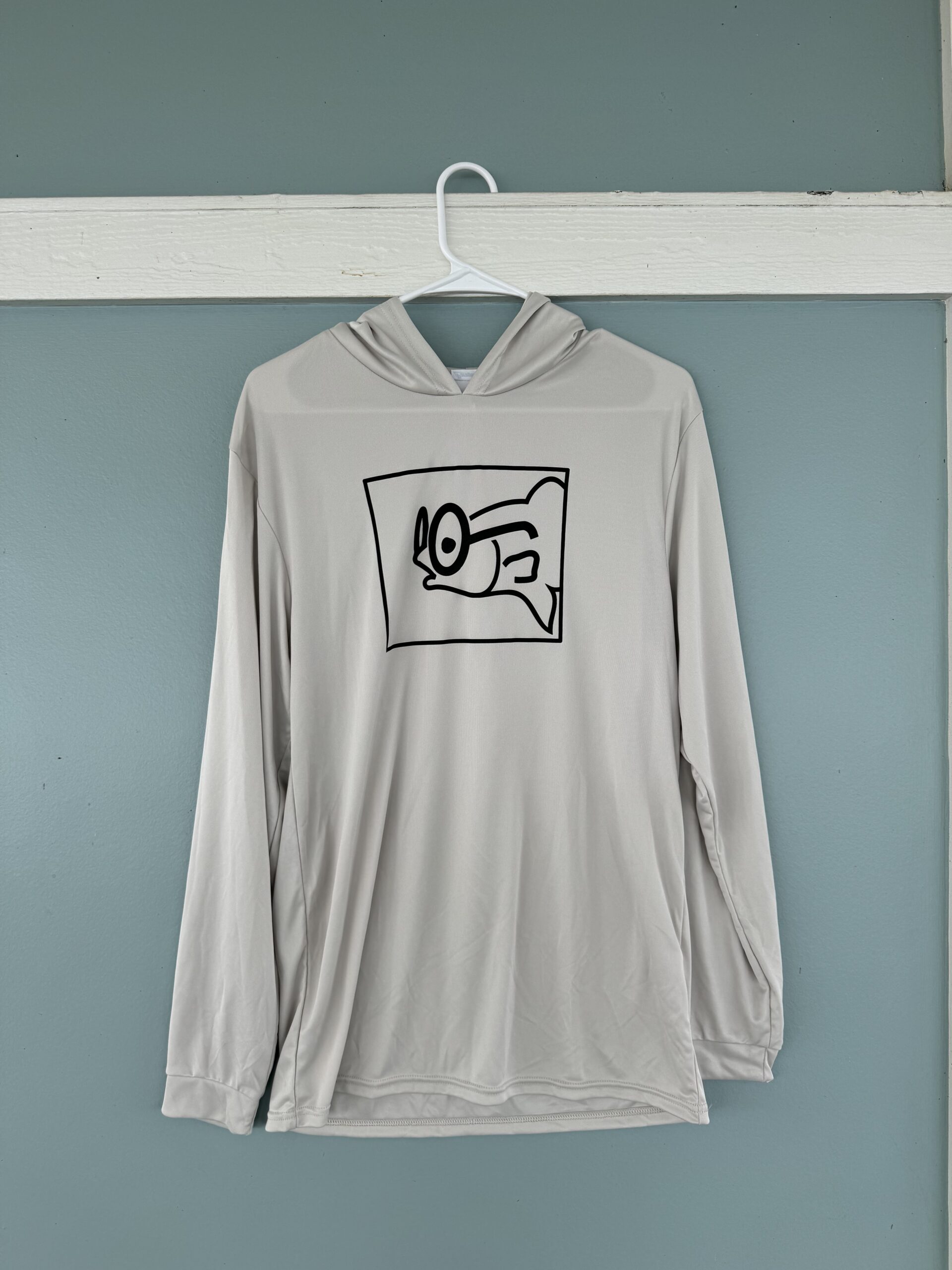 No clingy long sleeve spf shirts for Fisherman’s Post–these hooded spf shirts feel more like an extremely light, comfortable t-shirt.