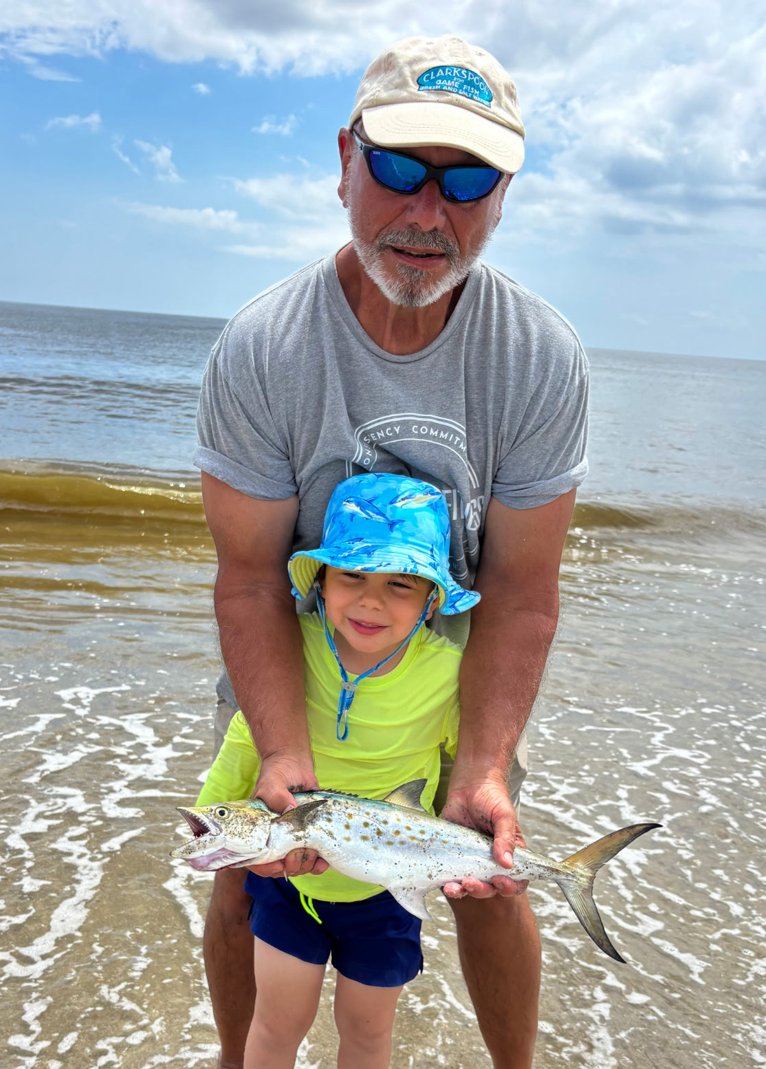 Weeks Lloyd (age 5), of Charlotte, landed this 21″ spanish mackerel from the surf at Oak Island using a live finger mullet. He was fishing with his great uncle, Capt. Wayne Ayers of Reel Good Surf Fishing.