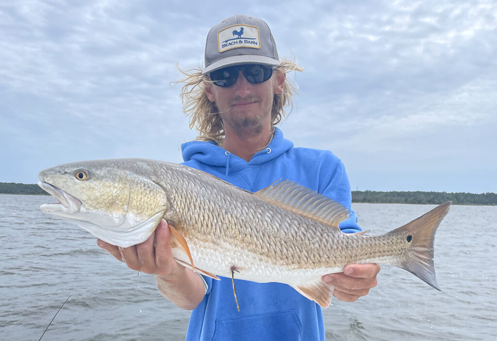 Capt. Jacob Boucher, of Southern Tides Fishing Charters, caught this 28” tagged redfish on cut menhaden in the White Oak River.