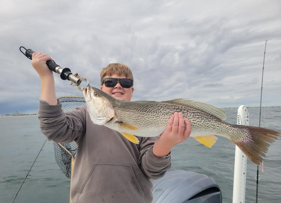 Vincent Briggs, of Wilmington, with a 6.5 lb. grey trout caught offshore of Wrightsville Beach using a soft plastic.
