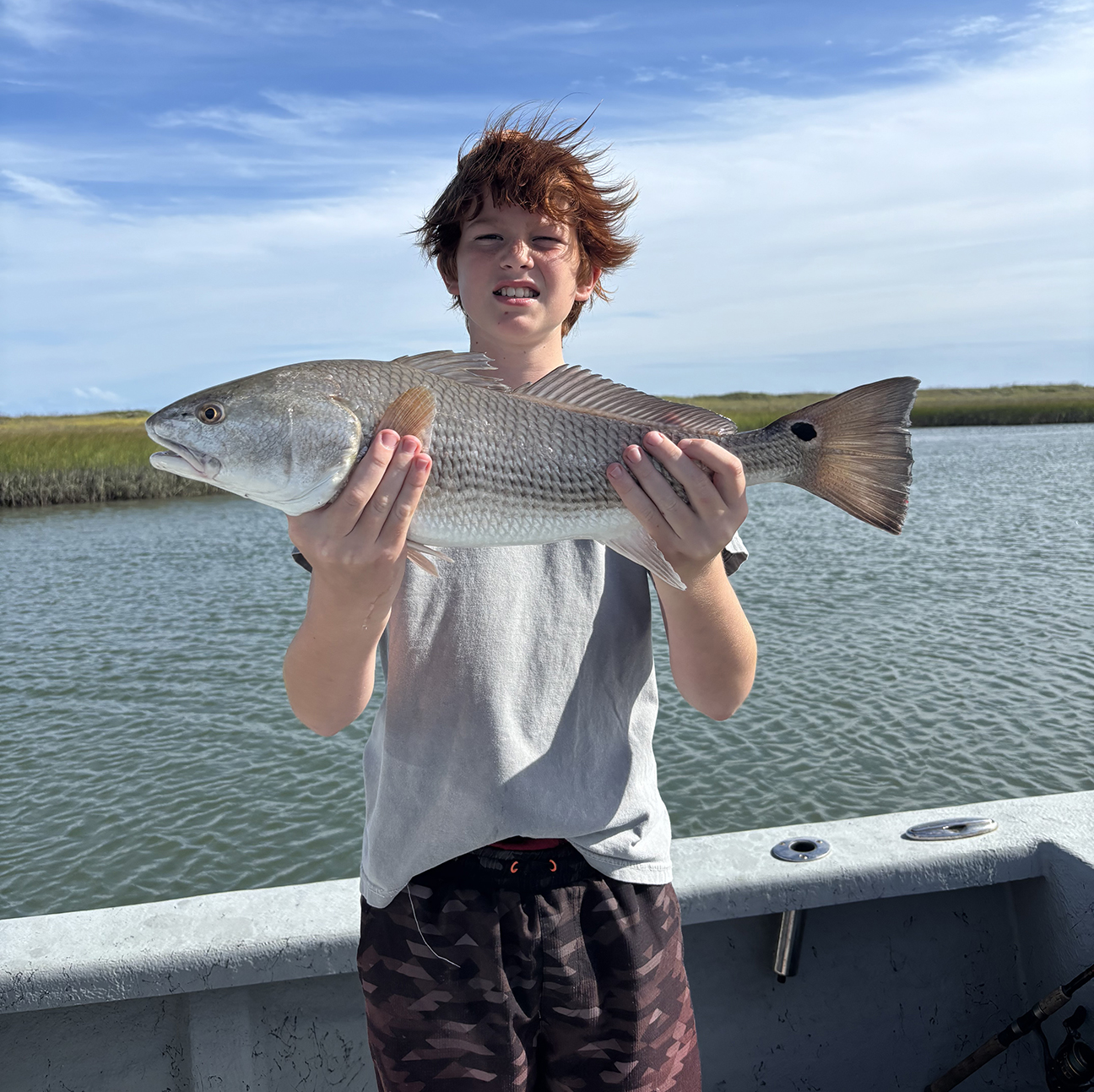 Wade Wallace, of Wilmington, landed this 22″ red drum behind Masonboro Island using a live finger mullet.